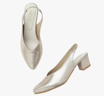 Marc Loire Women’s Slip On Golden Shimmer Block Heel Fashion Sandal for Casual, Outdoor, Party and Holidays